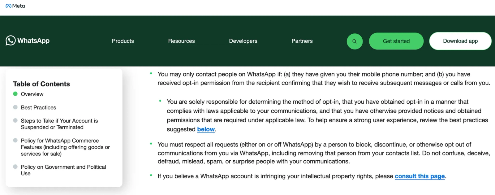 WhatsApp Business Messaging policy requires opt-in and forbids spam or surprise messaging.