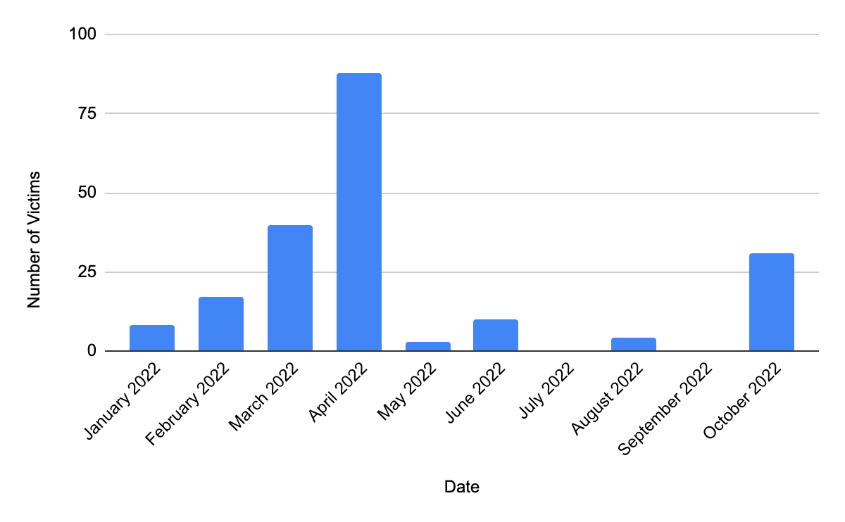 Figure 4: Overview of Anka Red Team’s defacement victims between January and October 2022 (Source: Zone H)
