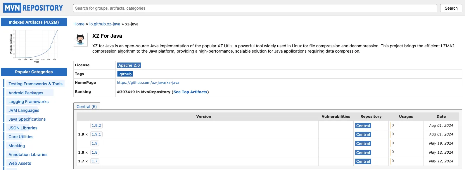 - MVN repository: https://mvnrepository.com/artifact/io.github.xz-java/xz-java/1.9.2