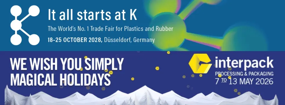 Promotional banners for K-Fair and Interpack, two major industry conferences where at least eight of the targeted companies appear as exhibitors, supporting the hypothesis that event ecosystems may help the threat actor identify and profile commercial contacts for RFQ-themed lures.