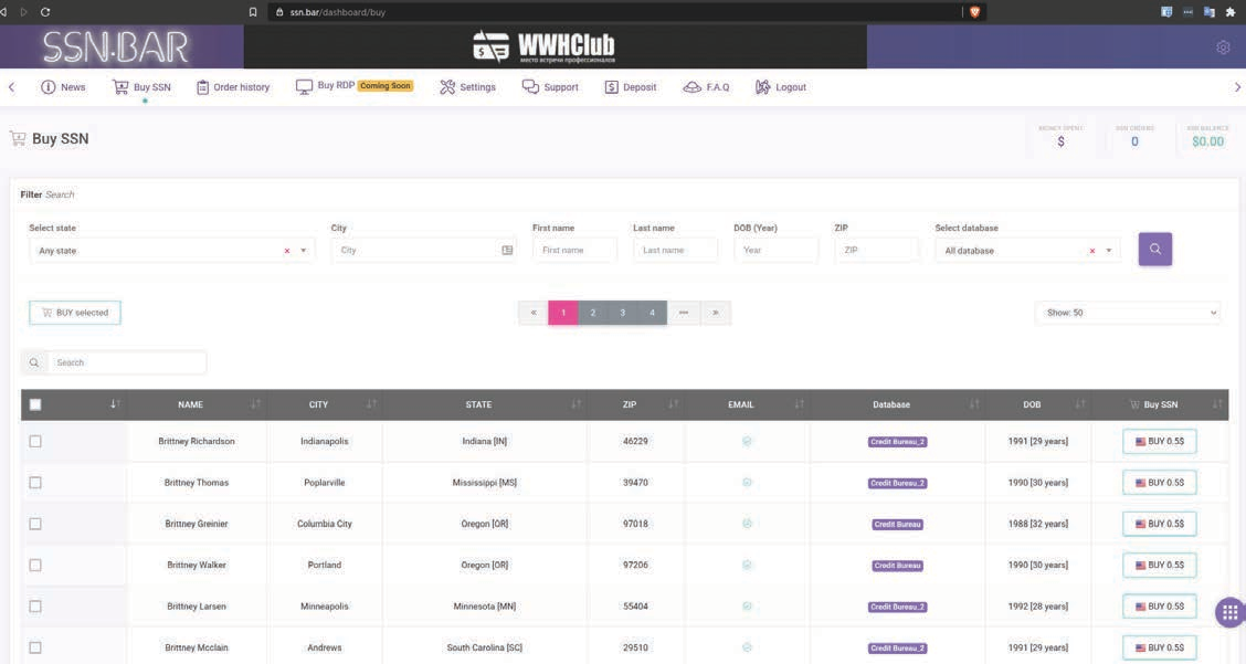 Figure 15: SSN.BAR PII shop (Source: SSN.BAR)