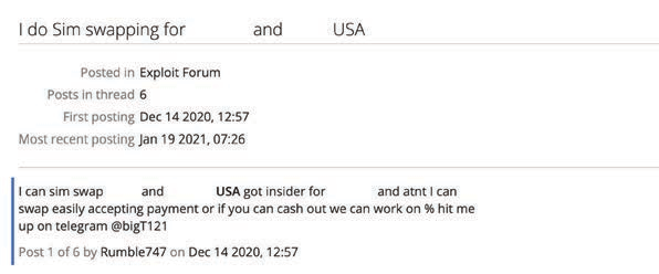 Figure 9: SIM swapping advertisements on the dark web (Source: Recorded Future)