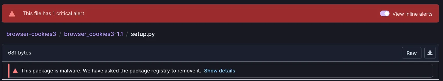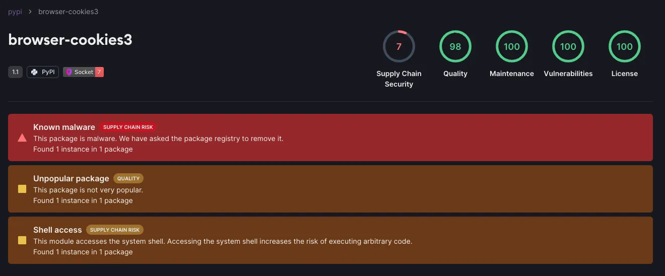 The browser-cookies3 package is a salient example of typosquatting, a technique where attackers publish a malicious package with a name similar to a legitimate one. This incident is part of a broader trend of software supply chain attacks, where threat actors employ typosquatting techniques in open-source repositories to distribute malware.