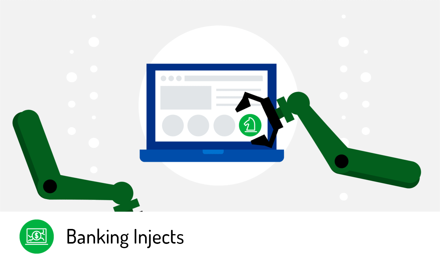 Automating the process by not having to write their own script, threat actors can easily obtain banking injects, which are widely published, popular, and powerful tools for performing fraud. Fake overlays or modules are used with banking trojans to inject HTML or JavaScript code to collect sensitive information before redirecting to a legitimate website.